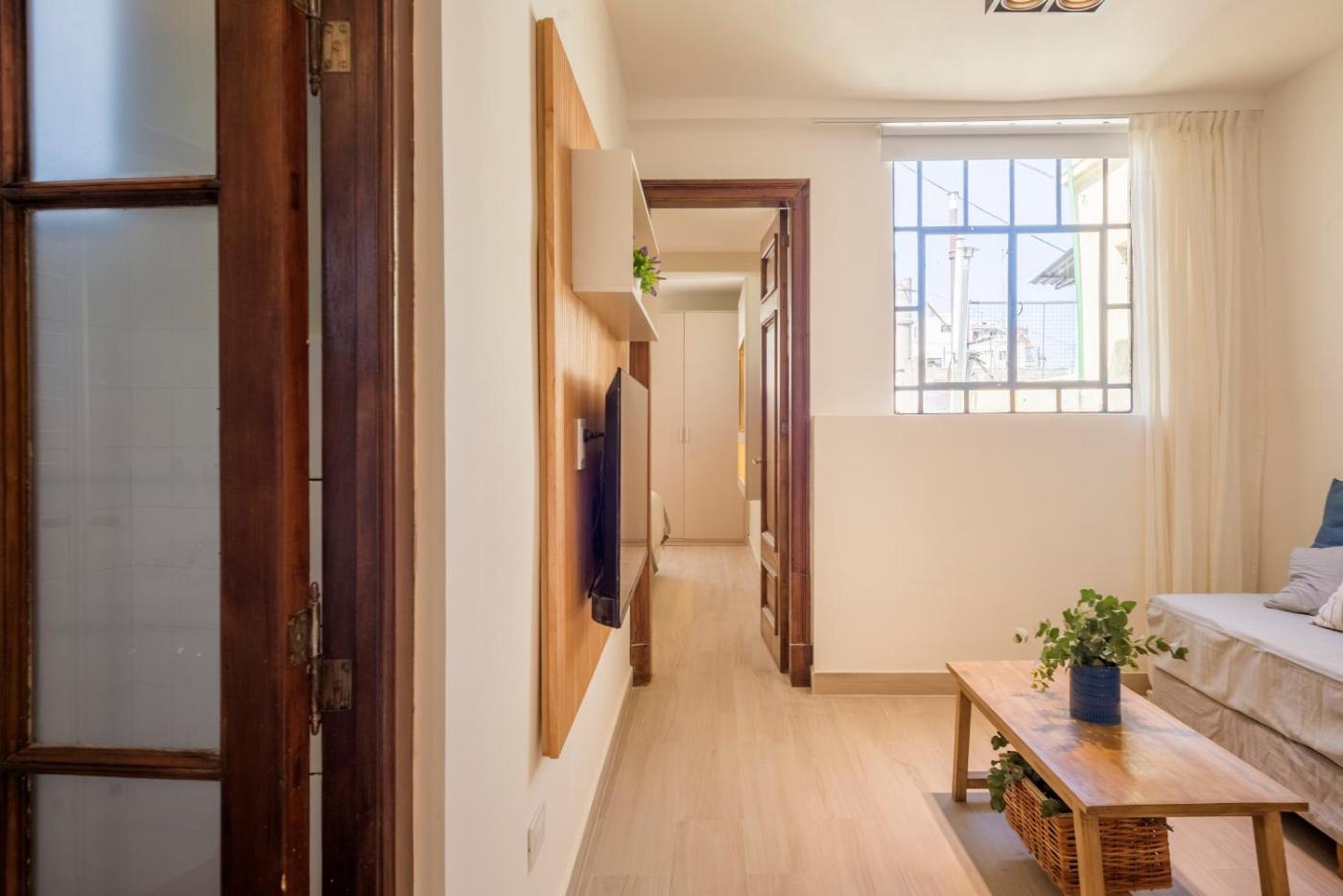 Apartamento de 1 dormitorio. The air-conditioned apartment has 1 bedroom, 1 bathroom and a kitchen. Meals can be prepared in the kitchen, which features kitchenware. This apartment features a washing machine, soundproof walls, a flat-screen TV and a balcony. The unit has 2 beds. ;