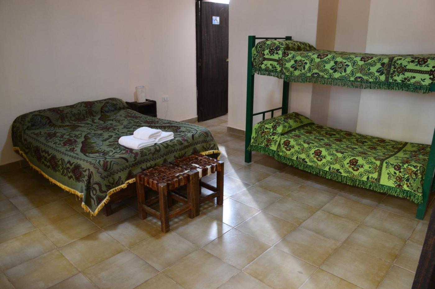 Habitación Familiar. This family room offers 2 single beds, 1 double bed and 1 bunk bed. It features a private bathroom, electric kettle, fan and heating.